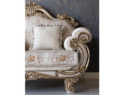 Depending on your screen settings and resolution on your device there may be a slight variance in fabric color and wood polish of the image and actual product.